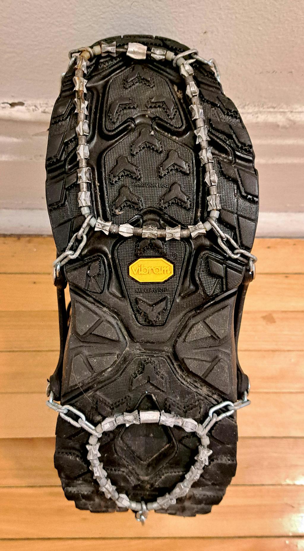 Yaktrax Diamond Grip provides aggressive traction for all winter walking conditions, from boilerplate ice to backcountry snow and everything in between. Made of case-hardened steel alloy and strung on steel aircraft cable, the patented Diamond Beads have biting edges that grip in all directions. The bead assemblies are riveted to a tough rubber sling which remains elastic in sub-zero temperatures. Diamond Grips are also self-clearing, so there is no snow or ice buildup.