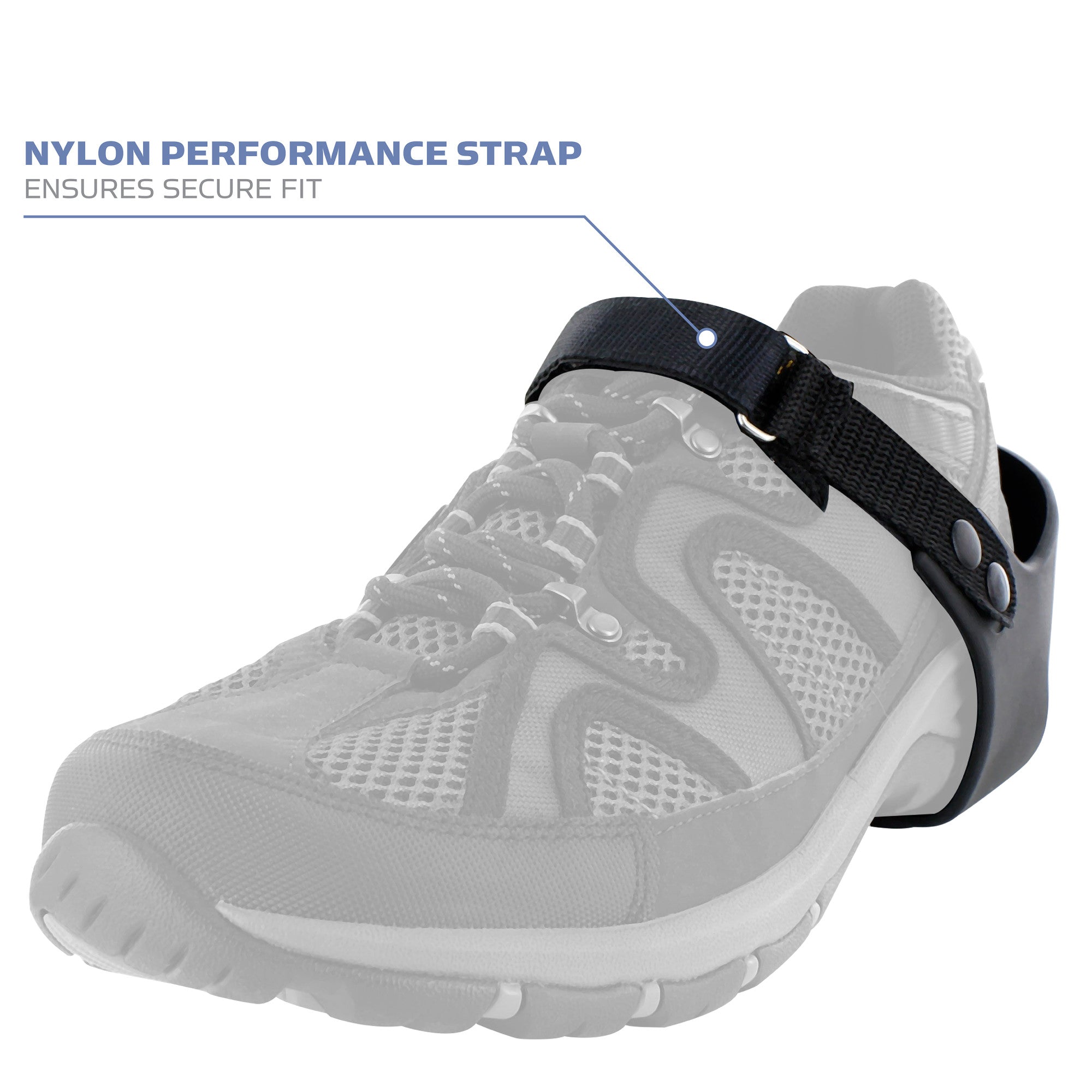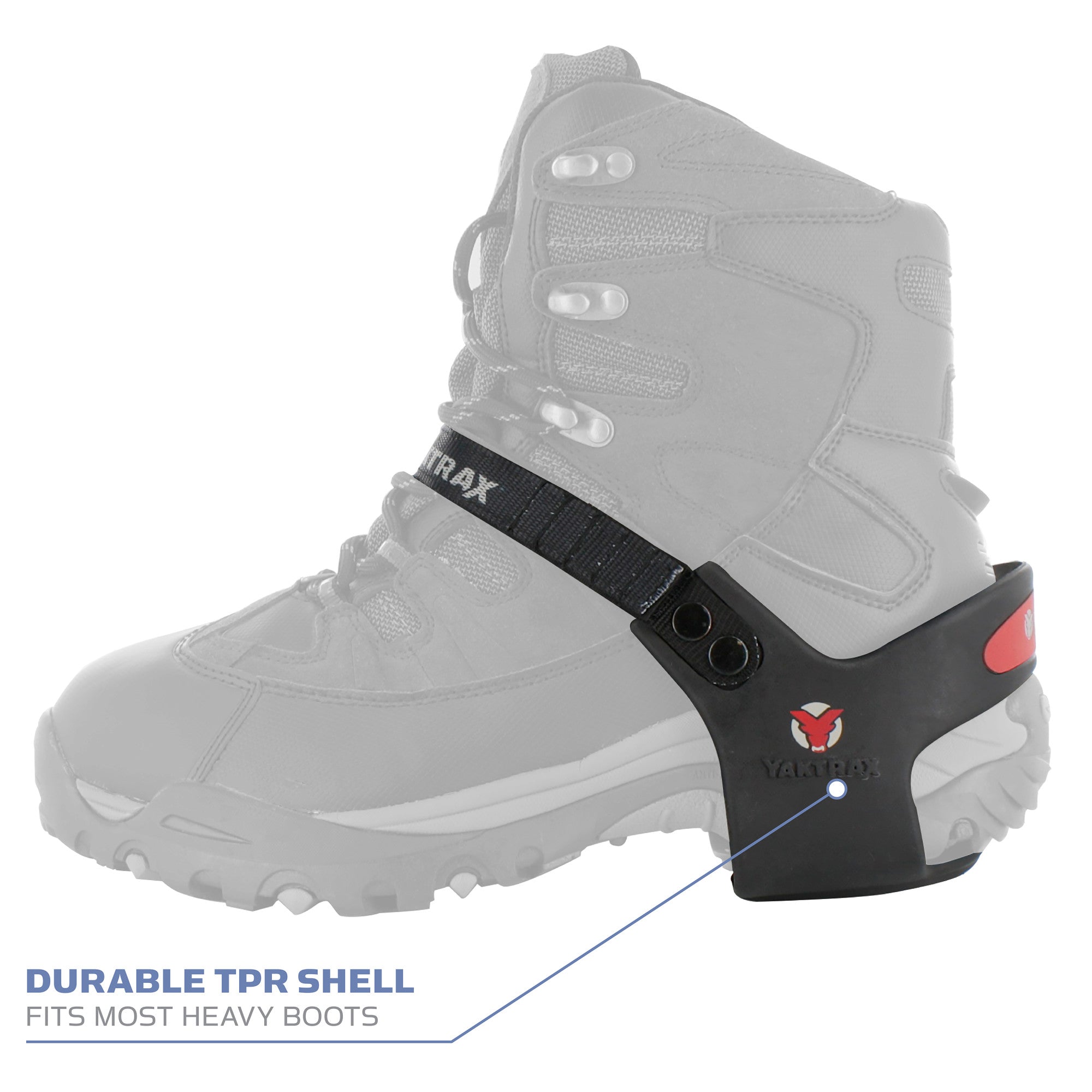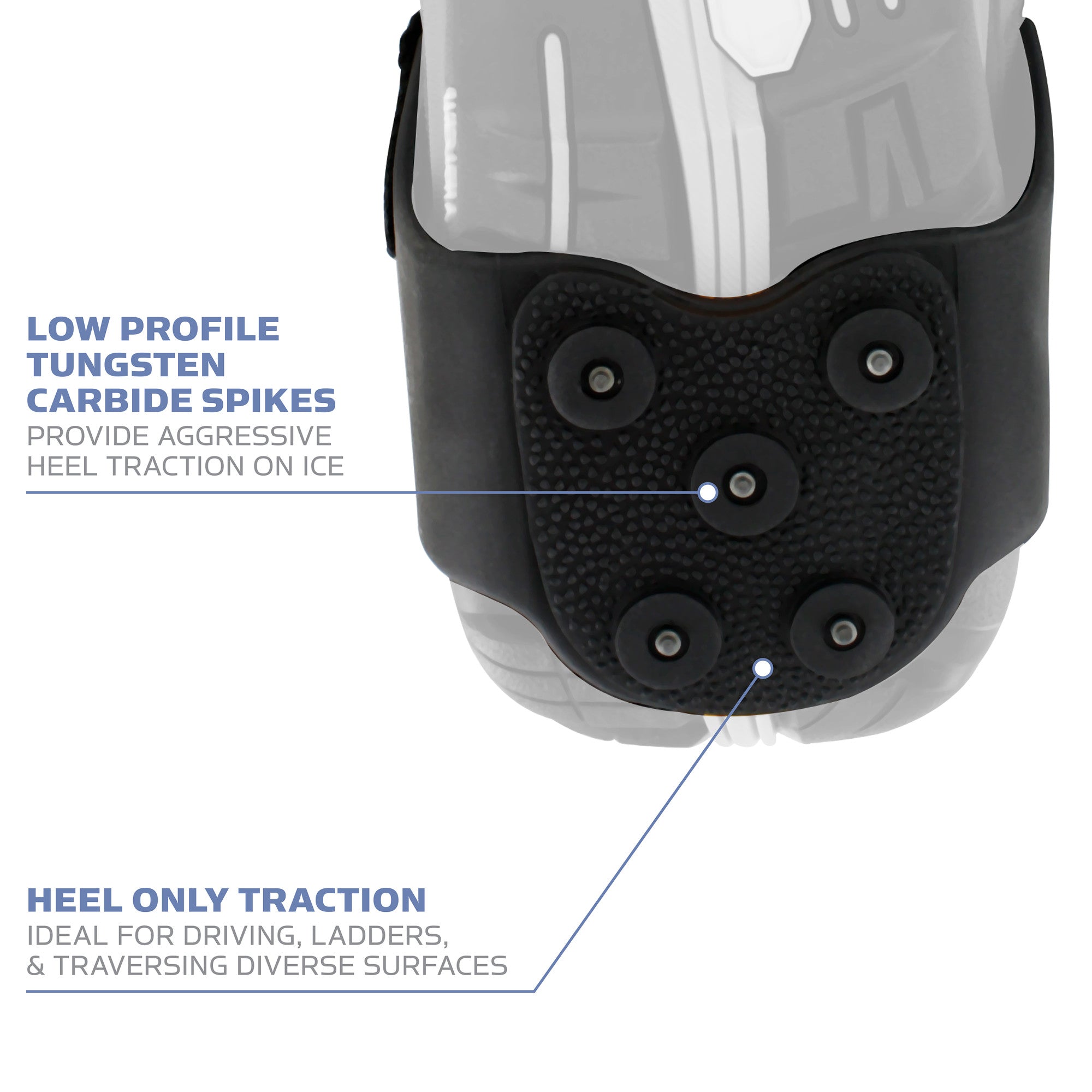 The Yaktrax® HeelTrax™ are a lightweight, easy to use ice traction device that fits over the heel of your boots or shoes. They are ideal for drivers, delivery personnel, construction workers, or anyone working outside where the use of a full sole traction aid may interfere with their ability to drive vehicles, climb ladders, or perform other duties. HeelTrax provides you with the confidence you need to navigate icy and snow conditions.